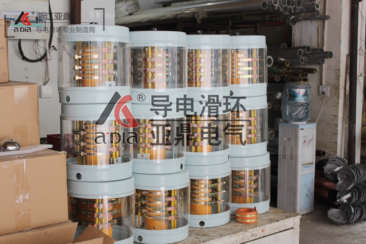 亚鼎电气经过多年的努力和生产试验,吸收了棉纺厂同仁的宝贵意见,使改造创新后的滑环使用寿命长、装卸方便、无需维护保养,大大降低了电器电机及其它情况造成的经济损失,充分发挥该机开松、混合运转率高的作用。本滑环设计采用多片烧铸铜环分层绝缘为滑环中心导电柱,左右两边电刷片由弹簧合力压紧,电刷部分围绕中心导电柱回转,无需轴承配合,抓取棉量配有时间继电器调节达到真正的高效无故障运转,是理想的旋转导电装置。