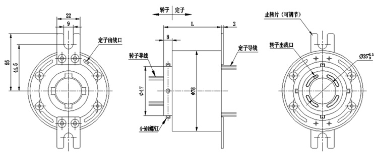 2.在滑环安装时,务必要保护好导线,避免因导体绝缘层损坏而影响产品品质。