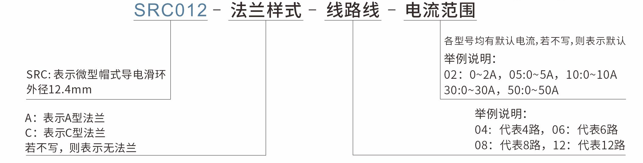 SRC012-12 表示:帽式导电滑环,外径18mm,支持12路2A电流信号;