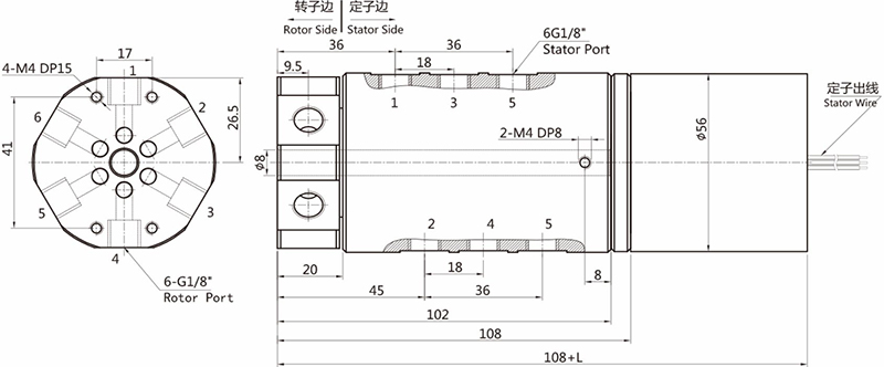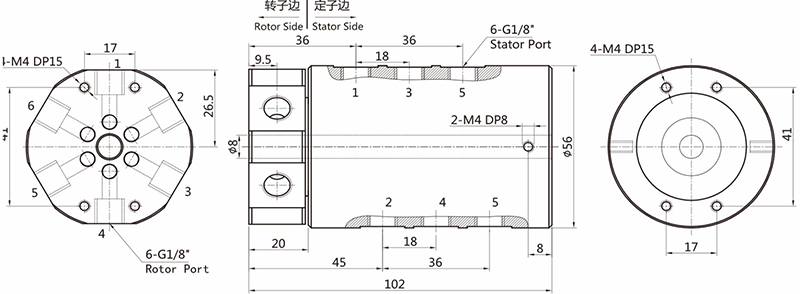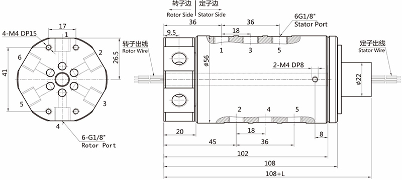 YD06006(6进6出,6~8mm气管,纯气动旋转接头)尺寸图