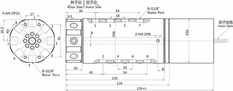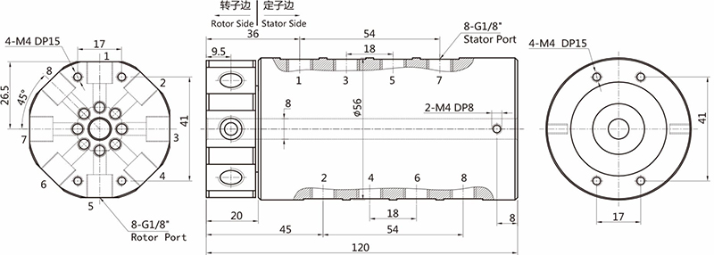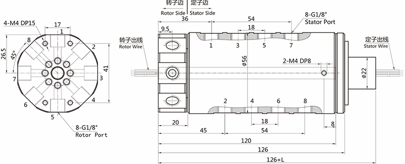 YD08006(8进8出,6~8mm气管,纯气动旋转接头)尺寸图