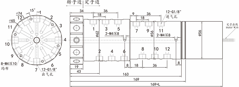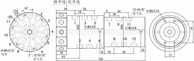 YD12006(12进8出,6~8mm气管,纯气动旋转接头)尺寸图