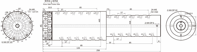 YD24004(24进24出,4mm气管,纯气动旋转接头)尺寸图