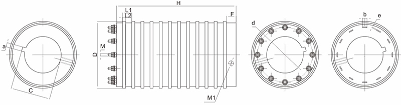 | Model | d | D | H | L2 | L1 | M | F | b | e | a | C | M1 |