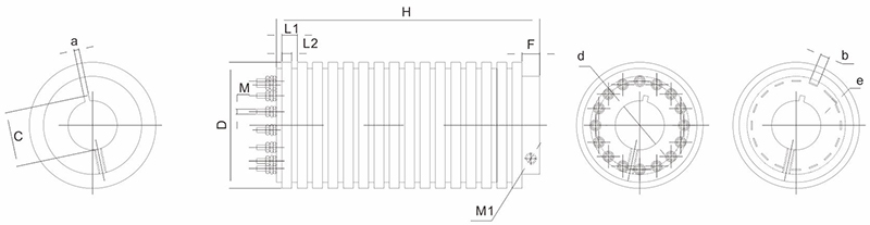 | Model | d | D | H | L2 | L1 | M | F | b | e | a | C | M1 |