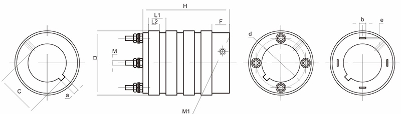 | Model | d | D | H | L2 | L1 | M | F | b | e | a | C | M1 |