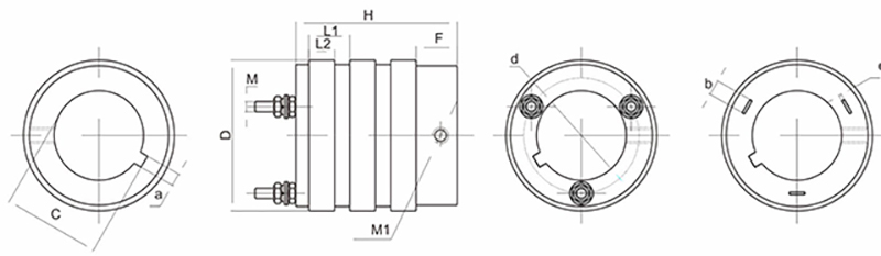 | Model | d | D | H | L2 | L1 | M | F | b | e | a | C | M1 |