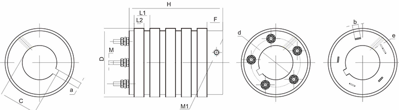 | Model | d | D | H | L2 | L1 | M | F | b | e | a | C | M1 |